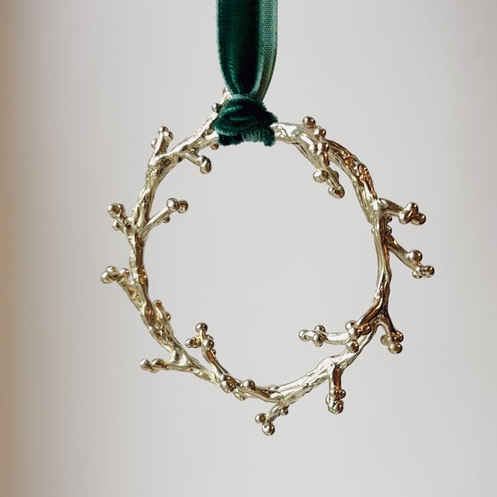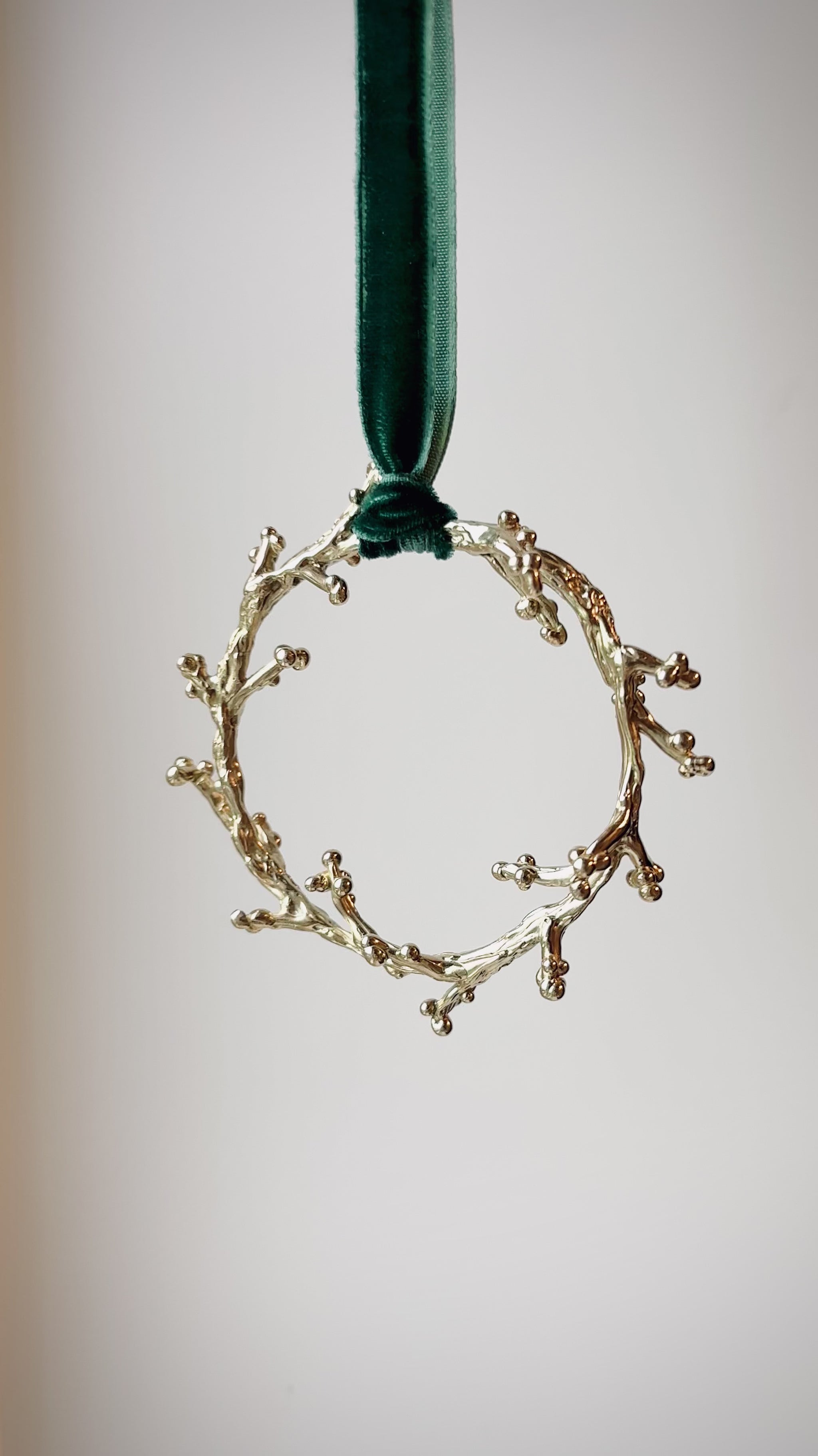 Skjem bort juletreet med et smykke av en julepynt. Formet for hånd og støpt i massiv messing, denne kransen er laget for å vare år etter år.